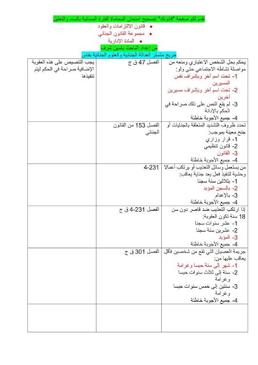 تصحيح إمتحان المحاماة الفترة المسائية من إعداد صفحة قانونك مشكورين